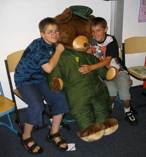 erstes Präventionsprojekt : Schutzbär Bulli in einer Grundschule in Cottbus, August 2004 |