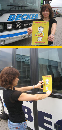 Becker Touristik, Neuwied "Gern unterstützen wir die Initiative gegen Gewalt und sexuellen Missbrauch an Kinder und Jugendlichen. Wir hoffen, dass wir durch das Anbringen der Aufkleber auf unseren 15 Schulbussen, insbesondere hilfesuchenden Kindern weiterhelfen können. Für die Zukunft