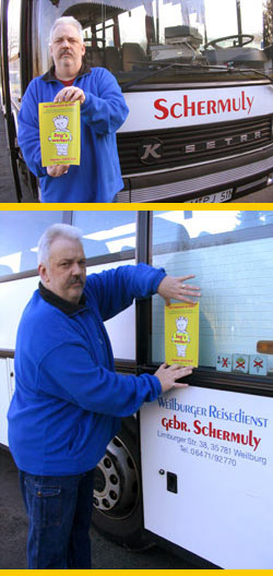 Gebrüder Schermuly GmbH & Co. KG, Omnibusbetrieb "Sehr geehrter Herr Heibel, wir unterstützen gerne Ihre Initiative in der Form, dass wir die Aufkleber in unseren Linien- und Schulbussen anbringen. Mit