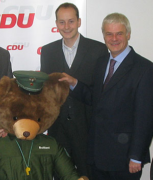 der Jungen Gruppe der CDU-Landtagsfraktion empfingen den Schutzbär